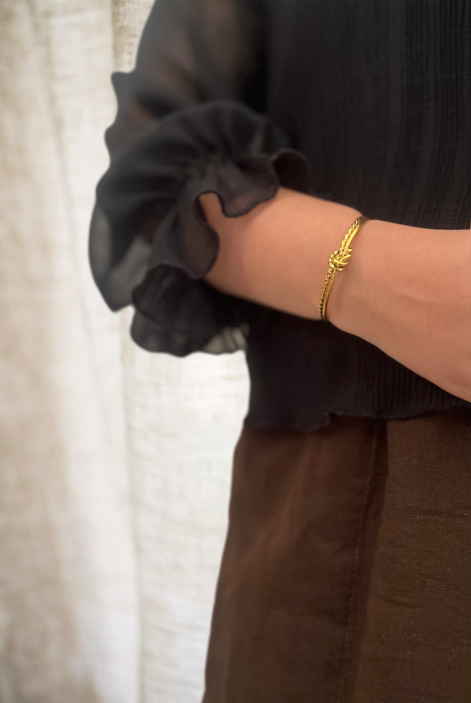 Elegant with a twist, Bella Knot features a refined knot detail symbolizing connection, strength, and effortless beauty. Crafted in radiant gold, this bracelet is a modern classic—simple enough for everyday, special enough for everything else.