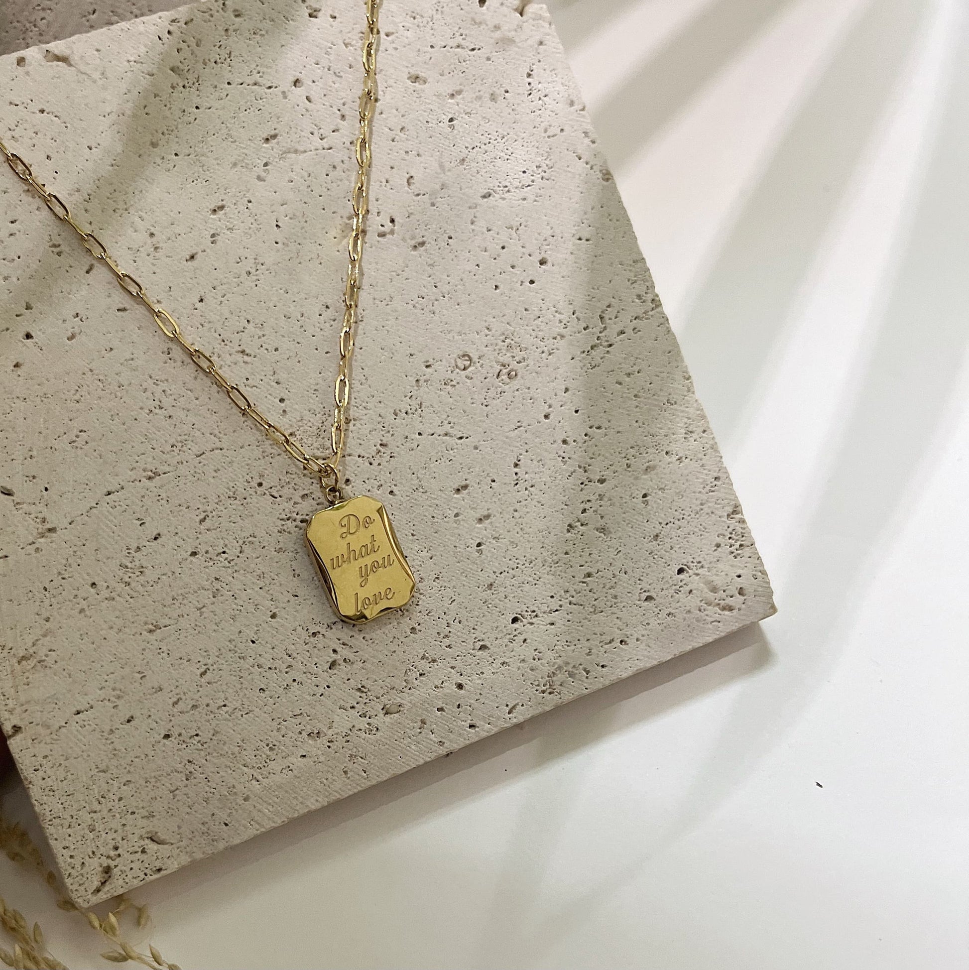 Inspired by slow mornings, cobbled streets, and espresso-fueled dreams—Life in Italy is a golden square pendant etched with the words “Do What You Love.” It’s more than jewelry; it’s a daily reminder to romanticize your life and follow your passion, Italian-style.