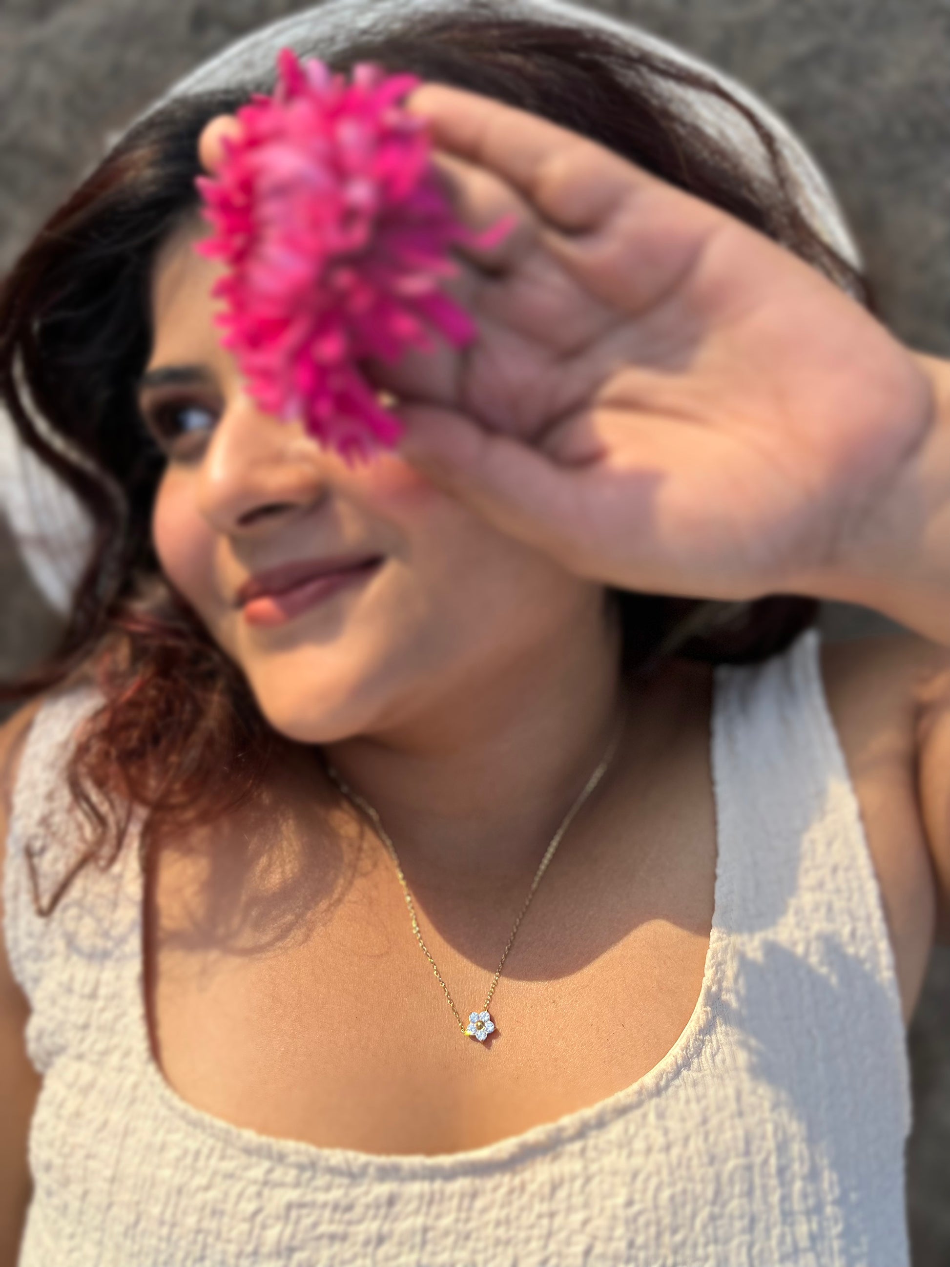 Lilia is barely there — and that’s what makes it unforgettable. This ultra-minimal transparent floral neckpiece is delicate, dreamy, and effortlessly feminine. Like a flower caught in sunlight, it’s subtle but full of feeling.