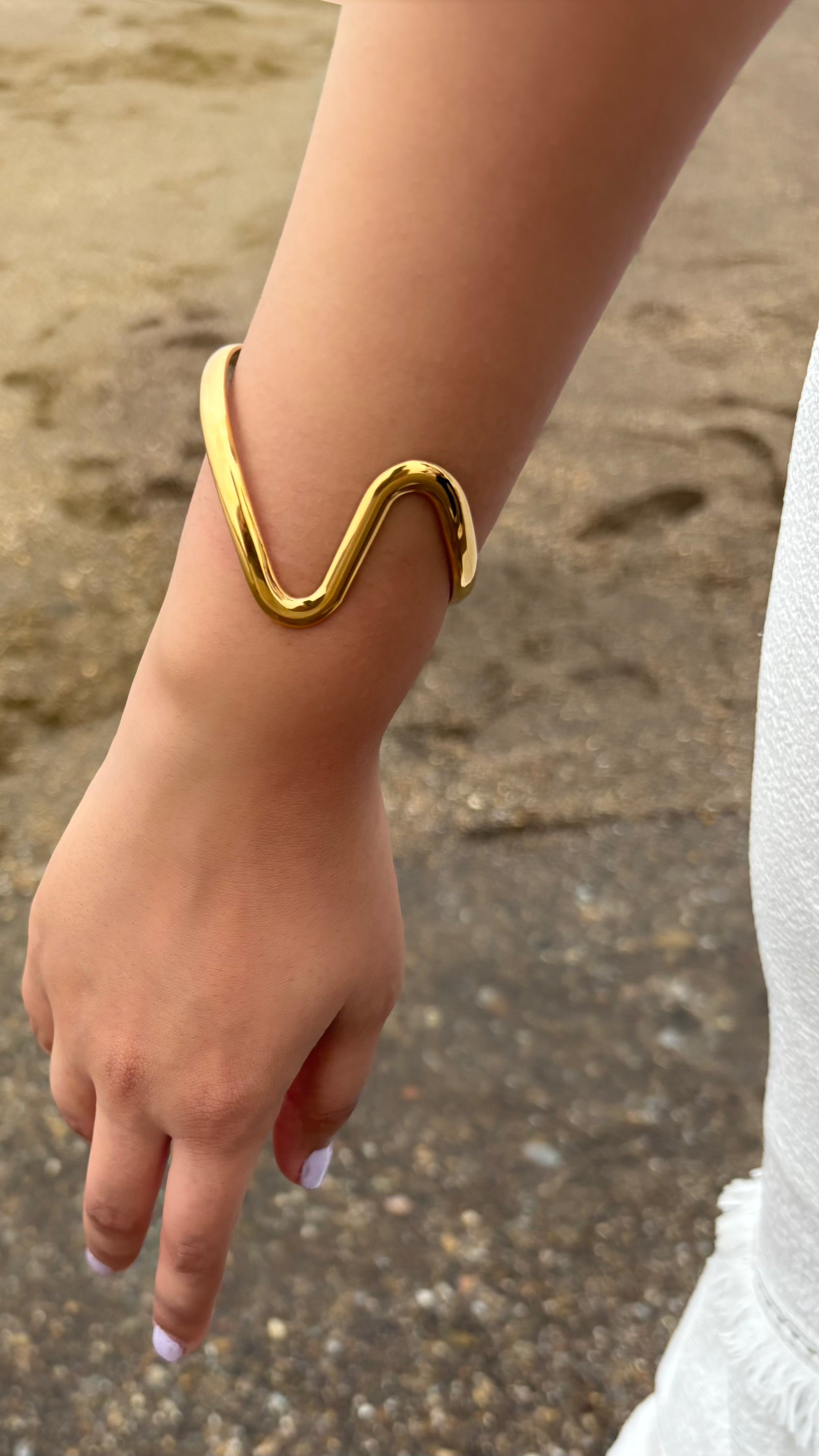 Flowy, bold, and golden—Wave & Wander is our statement wavy bracelet made for sun-chasers and sea-dreamers. With curves that mimic the ocean’s rhythm, it wraps your wrist in effortless charm.
