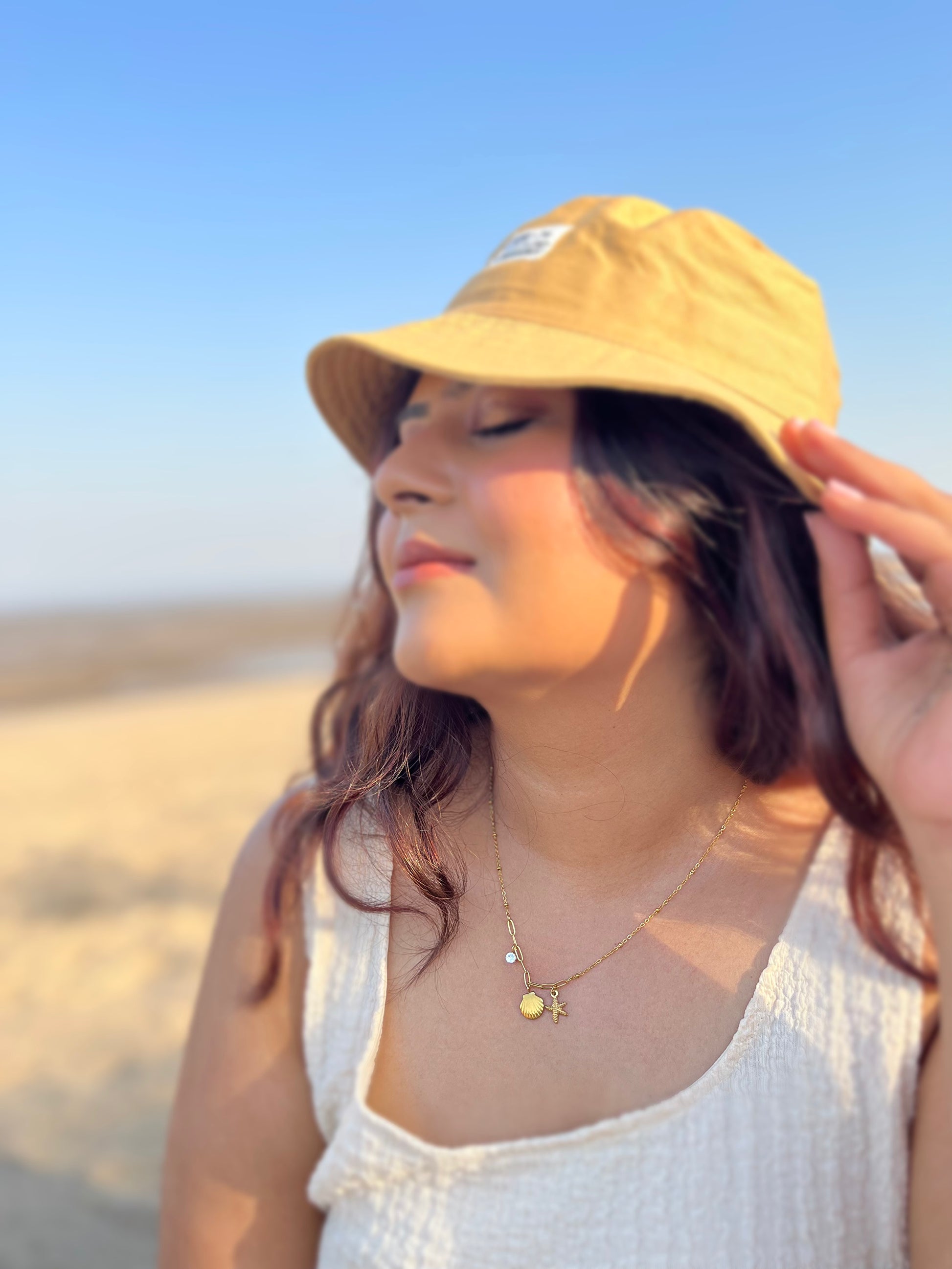 Sandy toes, sun-kissed nose, and a neckpiece that says coastal cool. Babe by the Shore is your seaside alter ego—featuring beachy elements and golden charm details that feel like summer bottled up. It’s playful, pretty, and made for golden hour selfies with the waves crashing behind you.