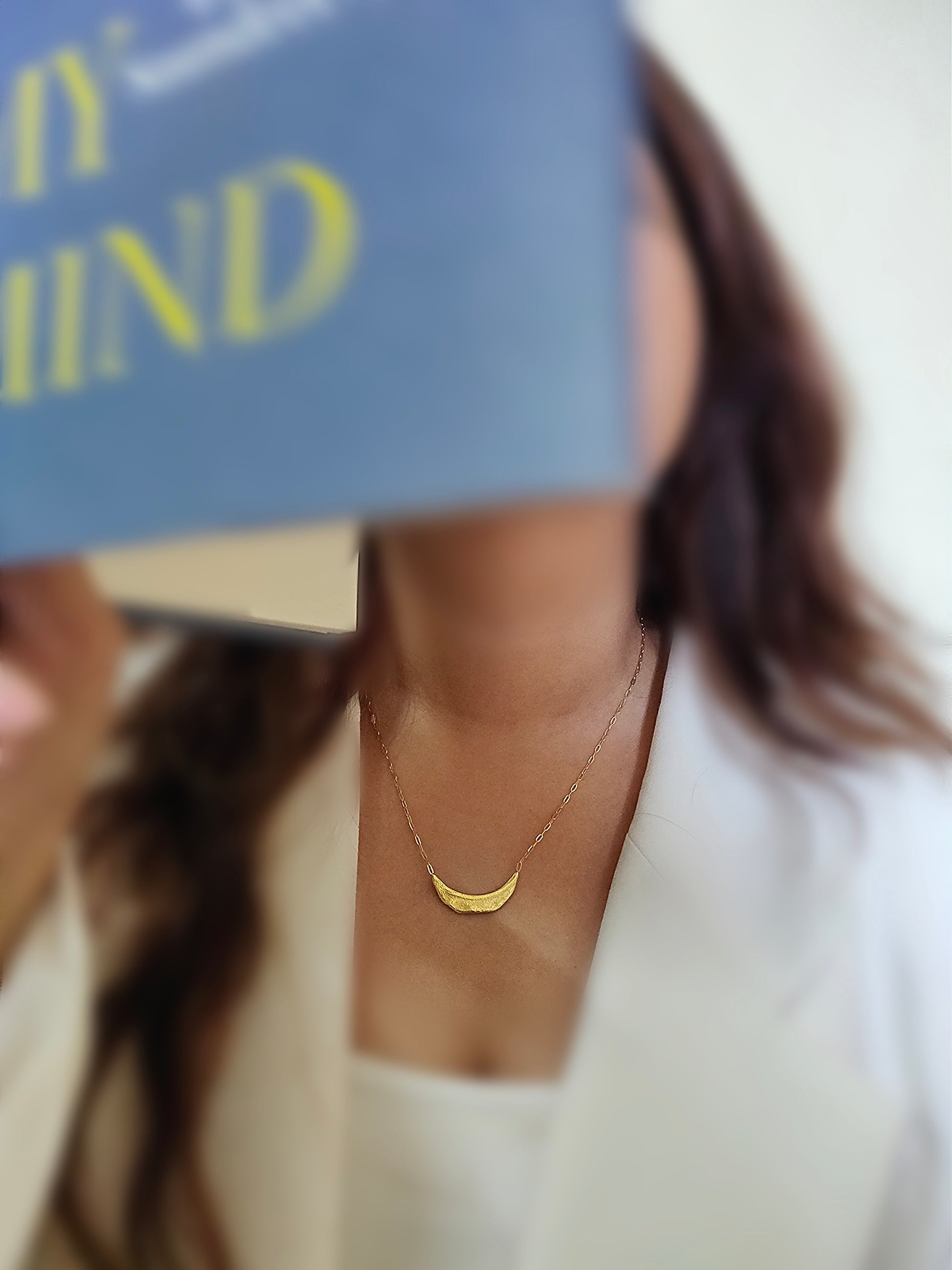 Say hello to The Chic Moonbeam—a modern ode to moonlight. With its smooth crescent charm and effortlessly elegant vibe, this neckpiece brings a hint of lunar magic to your everyday looks. It’s minimal, moody, and made to glow with you.