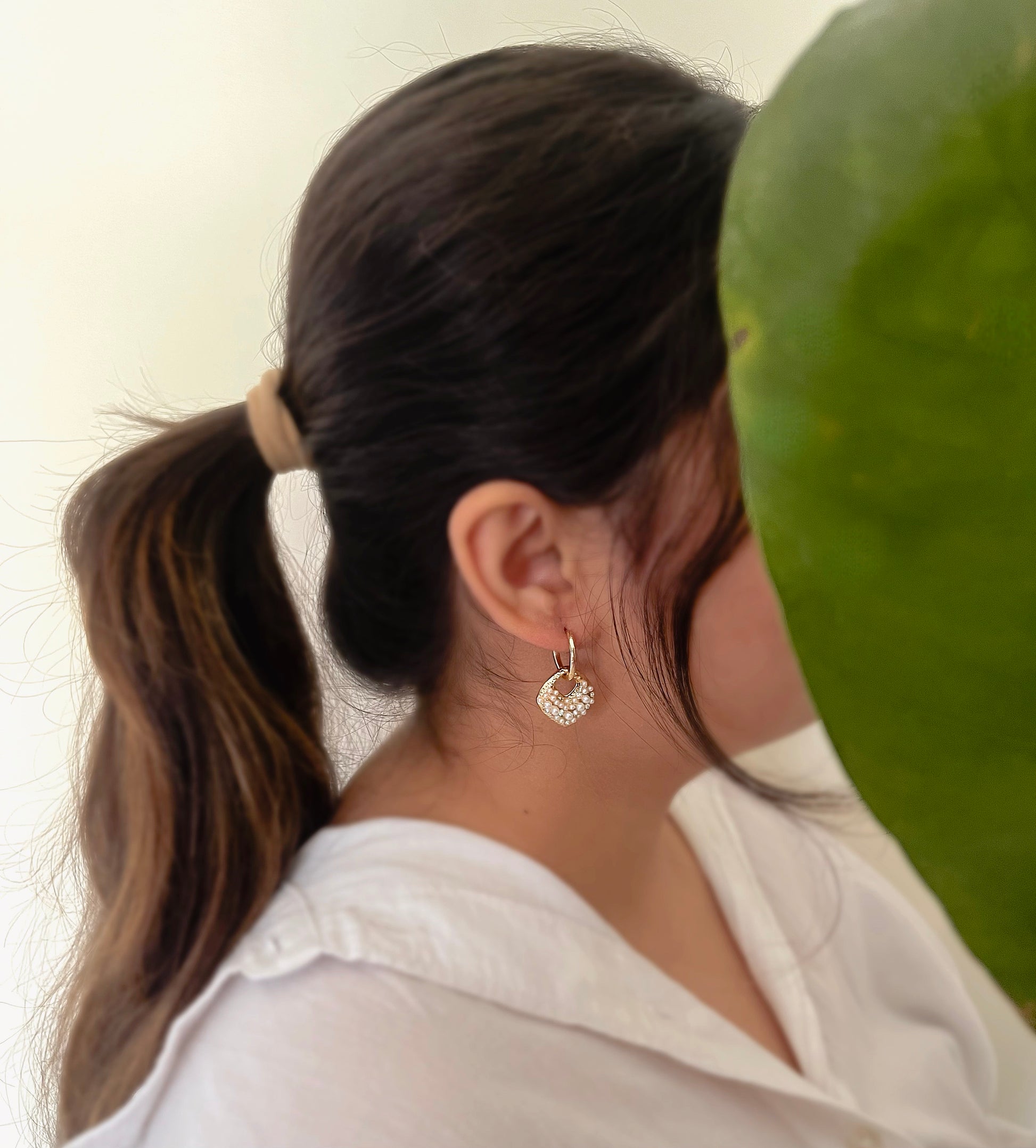 A little fantasy, a little vintage romance—The Dangling Dreamscapes earrings are straight out of a fairytale. Featuring pearl-studded lock charms on delicate hoops, they hold a secret only you know. Whether it’s dreams, memories, or a touch of mystery, these earrings are here to lock in your magic.