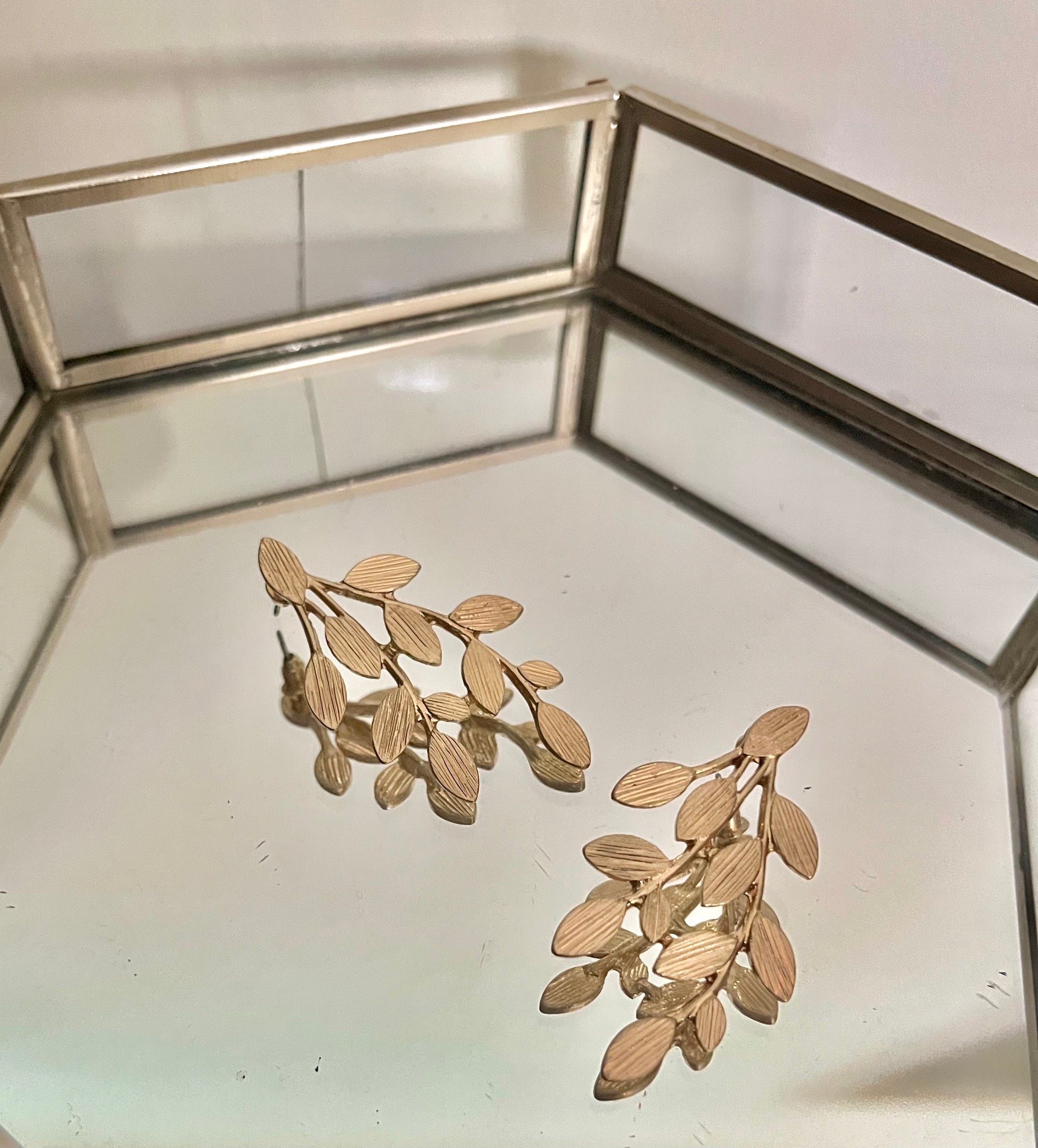 Bold and full of movement, our Falling For You Earrings capture the essence of wind-swept leaves in a striking, sculptural form. With their glossy gold finish and dynamic, flowing texture, these earrings create an eye-catching statement that’s both organic and glamorous. Perfect for those who love a touch of drama in their accessories.