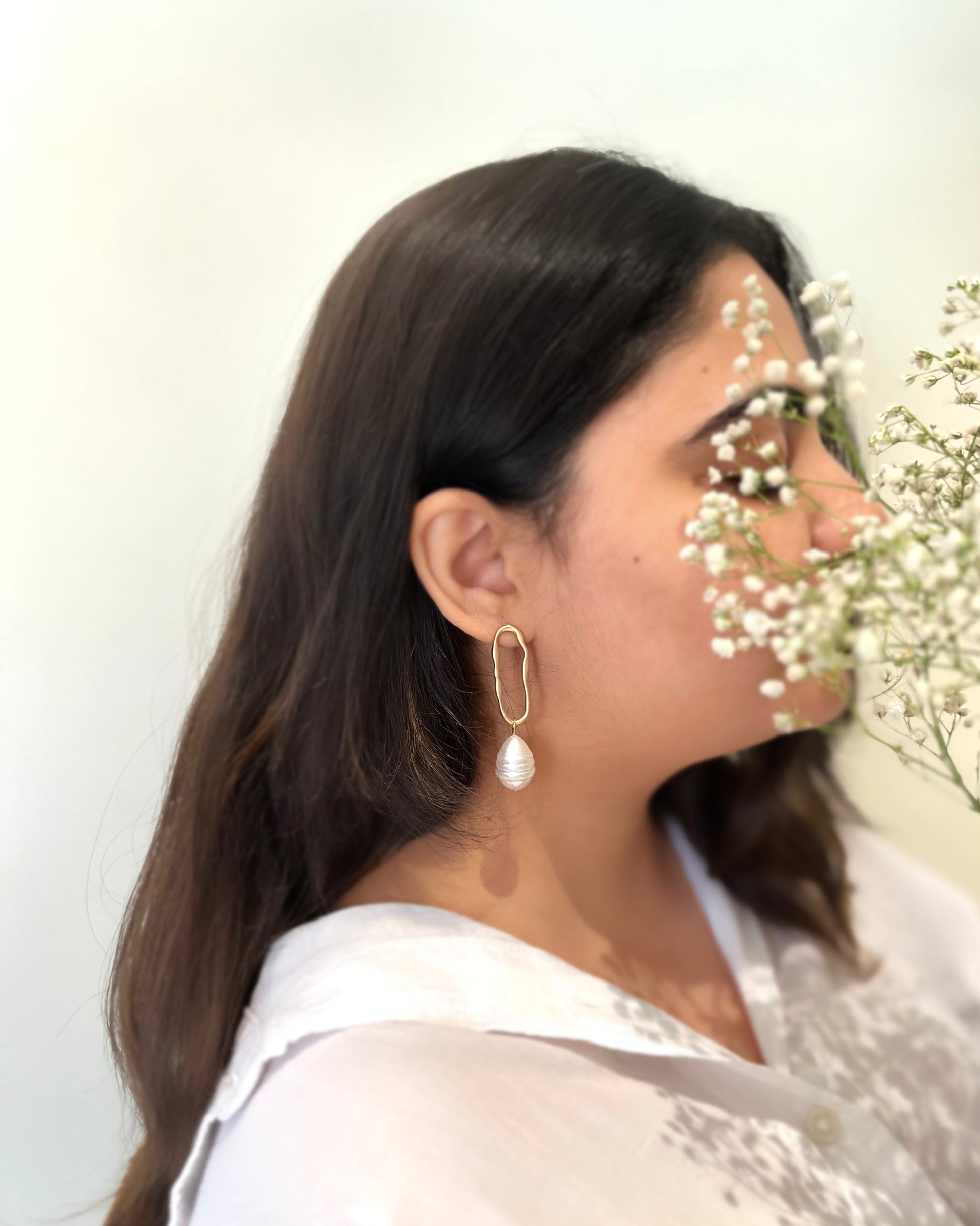 A perfect balance of structure and grace, these Fireflies Fables earrings hold a lustrous pearl drop that sways with every move. Designed for those who love modern sophistication with a hint of timeless charm.