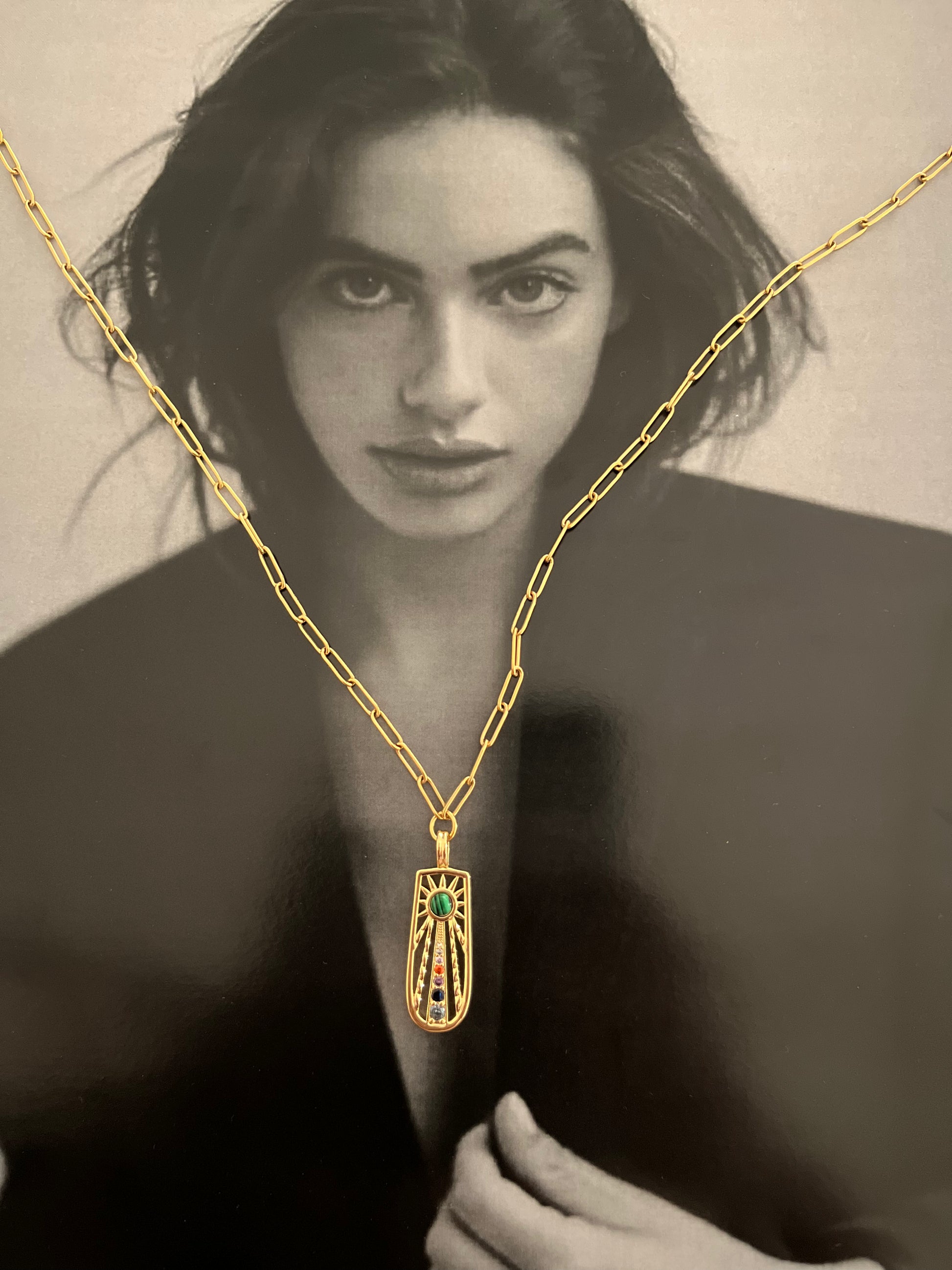 A burst of color, a dash of nostalgia—Happy Hippie Hue is where boho spirit meets bold vintage flair. With multicolored gemstones set in a statement pendant, this neckpiece brings joyful energy and retro charm in every hue. It’s playful, powerful, and made for the wild-hearted.