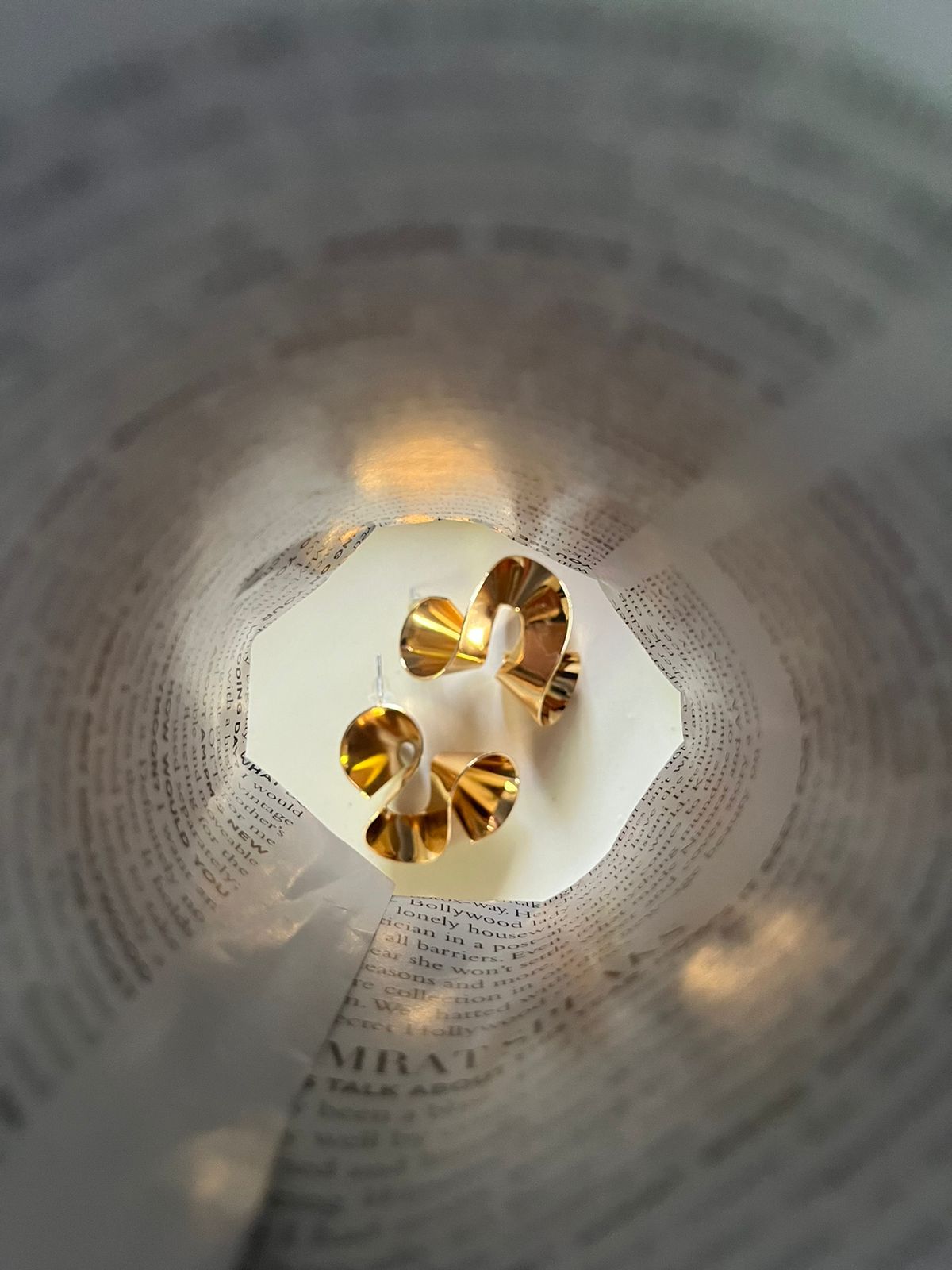 Our founder's clearly obsessed with sculptural jewelry, and these Sunspun Dreams are proof! A fun twist on classic hoops, their striking folds catch the light from every angle, adding movement and drama to your look. Whether you're dressing up or just want to add flair to a casual outfit, these statement earrings are made to stand out.