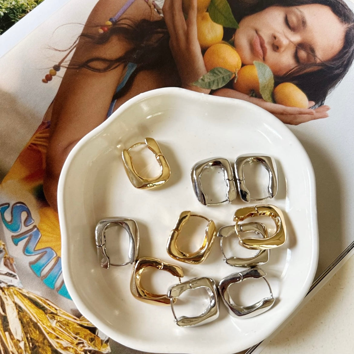 Sleek, chunky, and effortlessly modern, these silver squares redefine minimalism with their silhouette. A go-to accessory for adding an understated yet striking element to any look.